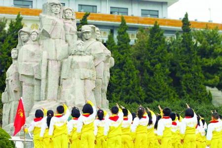 3月29日,在青島市革命烈士紀(jì)念館,南京路小學(xué)的同學(xué)們莊嚴(yán)地在烈士塑像前舉手宣誓,緬懷先烈英靈。