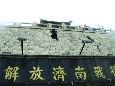 6日下午,在濟(jì)南解放閣,一些家長(zhǎng)帶著孩子在攀爬高高的石墻,讓人不禁為孩子們捏了一把汗。