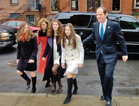 | 資料圖:2007年1月,斯皮策夫婦和三個女兒。 |