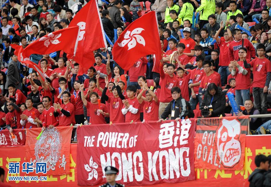 1月1日,香港球迷在比賽中加油助威。當(dāng)日,第34屆省港杯足球賽第二回合比賽在廣東省惠州市奧林匹克體育場舉行,香港隊以5比4戰(zhàn)勝廣東隊,以兩回合7比6的總成績獲得冠軍。新華社記者盧炳輝攝