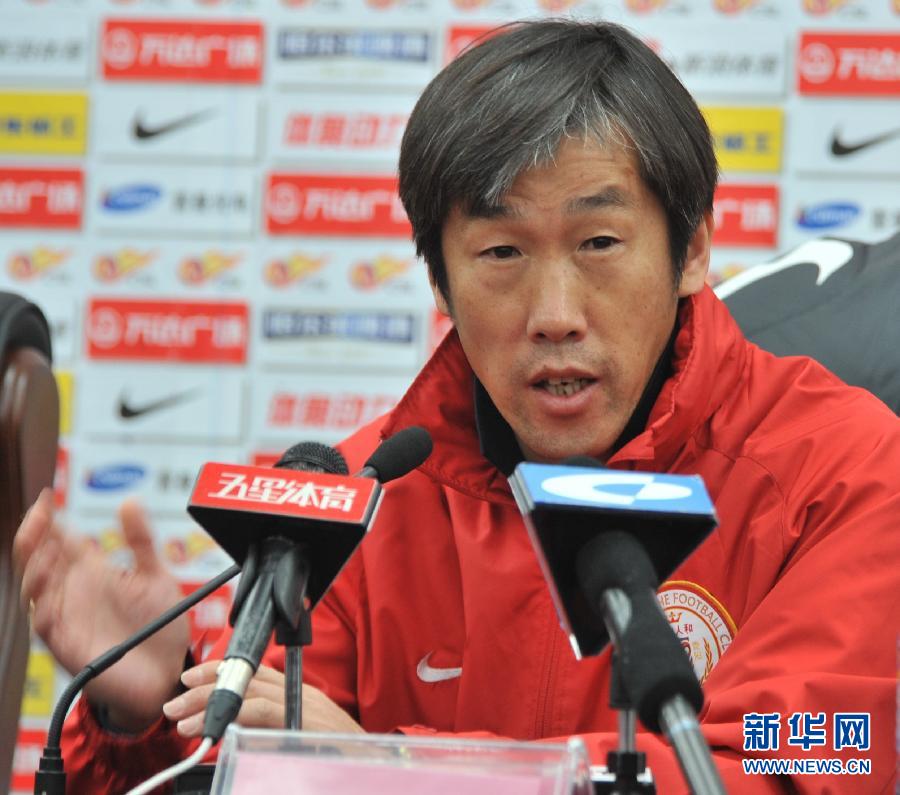 3月9日,貴州人和隊(duì)主帥高洪波在新聞發(fā)布會上。當(dāng)日,貴州人和俱樂部舉行2012賽季中超聯(lián)賽對陣山東魯能隊(duì)的賽前新聞發(fā)布會,貴州隊(duì)主帥高洪波與球員曲波出席了新聞發(fā)布會。新華社發(fā)(陶亮攝)