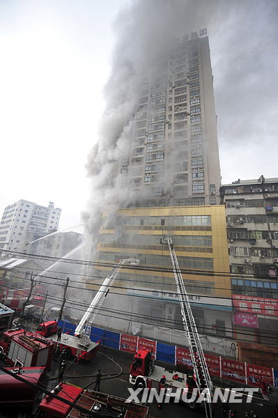 當(dāng)日9時28分左右,武漢漢正街利濟南路25號硚房大廈發(fā)生火災(zāi),消防部門接報后迅速調(diào)集10個消防中隊、67臺消防車、200名消防人員趕到現(xiàn)場施救。目前樓中被困和傷亡人數(shù)仍不清楚,事故原因正在調(diào)查之中。截至發(fā)稿時,大火仍在繼續(xù)。新華社記者 郝同前 攝