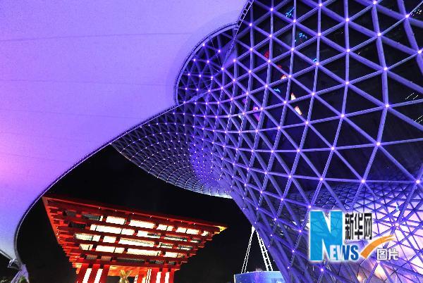 在世博園區(qū)景觀燈襯映下的中國(guó)館(4月24日攝)。上海世博會(huì)中國(guó)國(guó)家館,建筑外觀以“東方之冠”為構(gòu)思主題,整體構(gòu)型取自中國(guó)古代木結(jié)構(gòu)建筑元素——斗拱和鼎器。在世博園的大部分區(qū)域內(nèi),游客們都能看到這座標(biāo)志性的建筑。但正所謂“遠(yuǎn)近高低各不同”,處在不同的方位、不同的角度,你能欣賞到“東方之冠”迥異不同的風(fēng)采神韻。新華社記者王頌攝