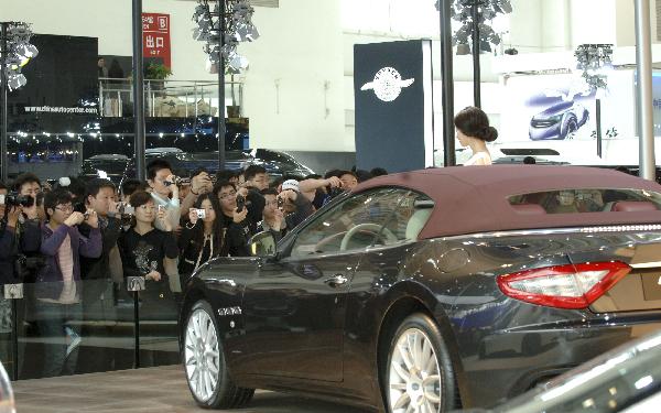 4月27日,觀眾在車展現(xiàn)場參觀。當(dāng)日,以“暢想綠色未來”為主題的2010(第十一屆)北京國際汽車展覽會迎來首個公眾參觀日,眾多觀眾前往北京中國國際展覽中心參觀車展。新華社發(fā) (張宇 攝)