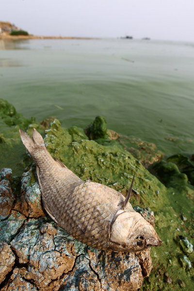 2010年5月26日,巢湖西半湖塘西河附近開始出現(xiàn)較大面積的藍藻。湖岸邊有很多被沖上岸的死魚。