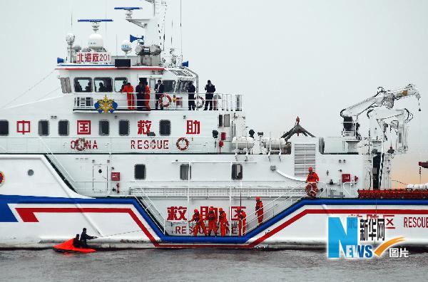 當(dāng)日,山東省海洋與漁業(yè)廳、交通運(yùn)輸部北海救助局和北海第一救助飛行隊(duì)聯(lián)合在威海石島港附近海域舉行海上漁船應(yīng)急救援聯(lián)合演練,以提高海洋與漁業(yè)系統(tǒng)和專業(yè)救助部門(mén)聯(lián)合應(yīng)對(duì)海上漁船突發(fā)事故和險(xiǎn)情的快速反應(yīng)能力、應(yīng)急處置能力和協(xié)調(diào)救援能力。新華社發(fā)(初陽(yáng) 攝)