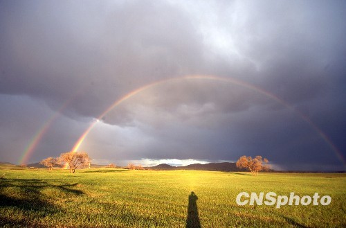 內(nèi)蒙古草原出現(xiàn)罕見“雙彩虹”奇觀