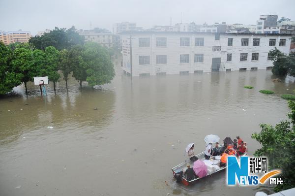 6月1日,廣西來賓市實驗中學被大水圍困。