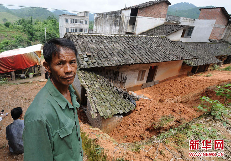 廣西岑溪市大業(yè)鎮(zhèn)新村黎藝修的房屋在強(qiáng)降雨引發(fā)的山體滑坡中被毀,全家因事先搬離而沒有傷亡(6月3日攝)。