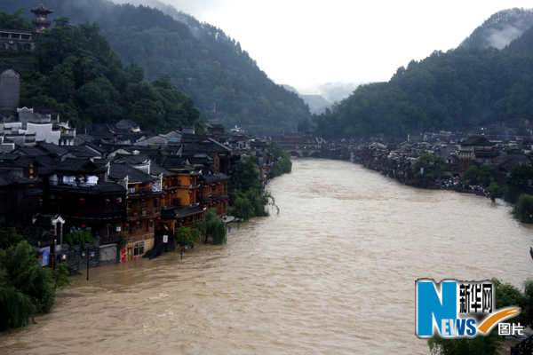 6月8日,沱江水位暴漲,鳳凰古城部分街道被淹。