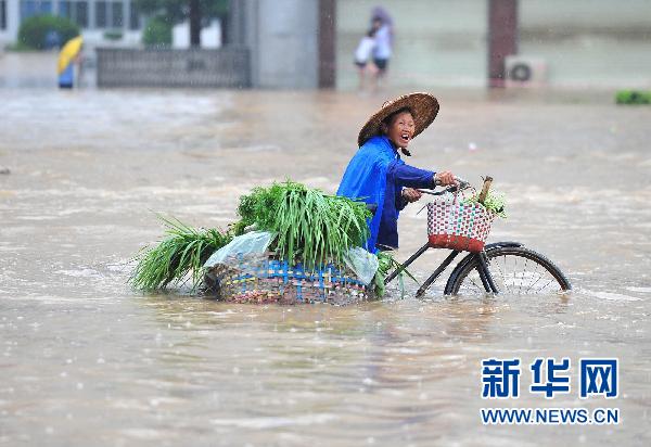 6月15日,菜農(nóng)在嚴(yán)重內(nèi)澇的南寧市街頭行進(jìn)。