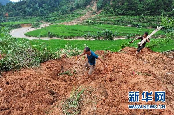 6月16日,廣西蒼梧縣沙頭鎮(zhèn)道路被泥石掩埋,村民艱難前行。據(jù)廣西壯族自治區(qū)民政廳16日17時(shí)統(tǒng)計(jì),連日的強(qiáng)降雨已造成廣西7市24縣(區(qū))受災(zāi),受災(zāi)人口合計(jì)63萬(wàn)人,累計(jì)緊急轉(zhuǎn)移安置9.82萬(wàn)人;農(nóng)作物受災(zāi)面積33.99千公頃,其中成災(zāi)15.05千公頃,絕收1.5千公頃;因?yàn)?zāi)倒房2023間。新華社記者黃孝邦攝
