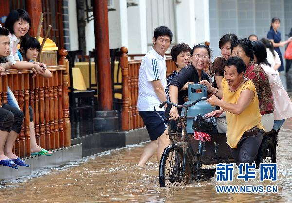 6月17日,桂林市區(qū)安新洲小區(qū)居民在轉(zhuǎn)移。當(dāng)日,廣西桂林市出現(xiàn)大到暴雨、局部大暴雨天氣,部分城區(qū)不同程度出現(xiàn)內(nèi)澇,部分鄉(xiāng)鎮(zhèn)農(nóng)田和房屋被淹。 新華社記者 陳瑞華 攝
