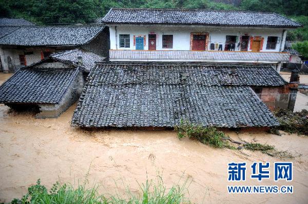 這是資溪縣高阜鎮(zhèn)初居村被淹的房屋(6月20日攝)。 6月19日零時(shí)至20日14時(shí),江西省資溪縣降雨量達(dá)511毫米,由于雨量大、來(lái)勢(shì)猛,資溪縣境內(nèi)瀘溪河、山斜河水位急劇上漲,瀘溪河超警戒水位2.5米,洪峰流量1650立方米每秒。受強(qiáng)降雨影響,資溪全縣12個(gè)鄉(xiāng)鎮(zhèn)(場(chǎng))全部受困,受災(zāi)人口達(dá)10.65萬(wàn)人,轉(zhuǎn)移人口5.8萬(wàn)人,倒塌房屋6760間,受災(zāi)農(nóng)田6.9萬(wàn)畝。目前,暴雨仍在繼續(xù),災(zāi)情進(jìn)一步擴(kuò)大。新華社記者 周科攝