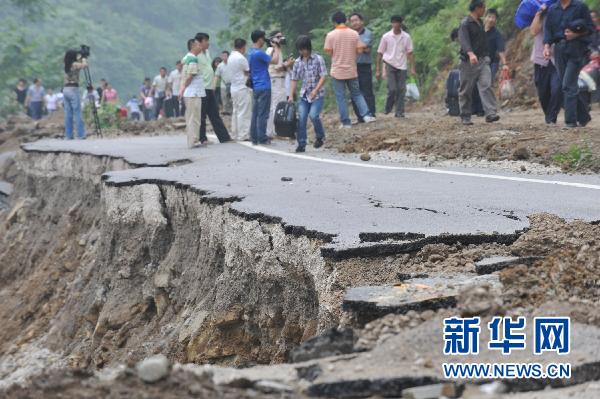 6月21日,貴州省遵義市正安縣內(nèi)的207省道出現(xiàn)大面積塌方,村民從塌方路面上經(jīng)過。 6月18日夜間以來,貴州省已有16個縣(市、區(qū))不同程度遭受暴雨洪澇、滑坡和泥石流災(zāi)害。全省受災(zāi)人口達164萬人,直接經(jīng)濟損失2.46億元。針對洪澇災(zāi)害災(zāi)情,貴州省減災(zāi)委、民政廳已于20日緊急啟動應(yīng)急救助Ⅱ級響應(yīng)。據(jù)貴州省氣象部門最新預(yù)報,貴州省從21日夜間起,將迎來新一輪強降雨,其中北部、中東部、東北部局地雨量將達到暴雨、大暴雨。新華社記者歐東衢攝