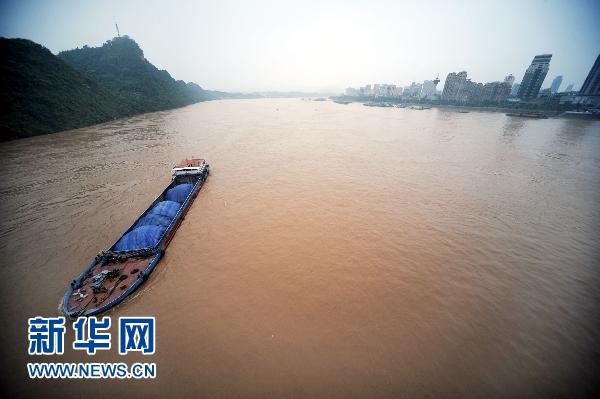 7月11日拍攝的長(zhǎng)江宜昌段水位上漲的江面。當(dāng)日凌晨,今年長(zhǎng)江入汛以來(lái)的首次洪峰到達(dá)三峽大壩。中國(guó)長(zhǎng)江三峽集團(tuán)公司實(shí)測(cè)結(jié)果顯示,上午此次洪峰的最大流量達(dá)38500立方米/秒,為今年三峽最大入庫(kù)流量。新華社發(fā)(劉曙松 攝)