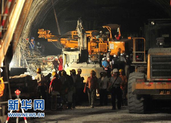 7月14日,救援人員在挖掘救援通道。當日上午,發(fā)生坍塌事故的新建南黎鐵路那適2號隧道次發(fā)生事故的隧道再次發(fā)生塌方,救援人員與被困人員失去聯(lián)系,使得救援工作受阻。目前,救援指揮部正在積極探明坍塌情況,調(diào)整救援方案! ⌒氯A社記者 黃孝邦 攝