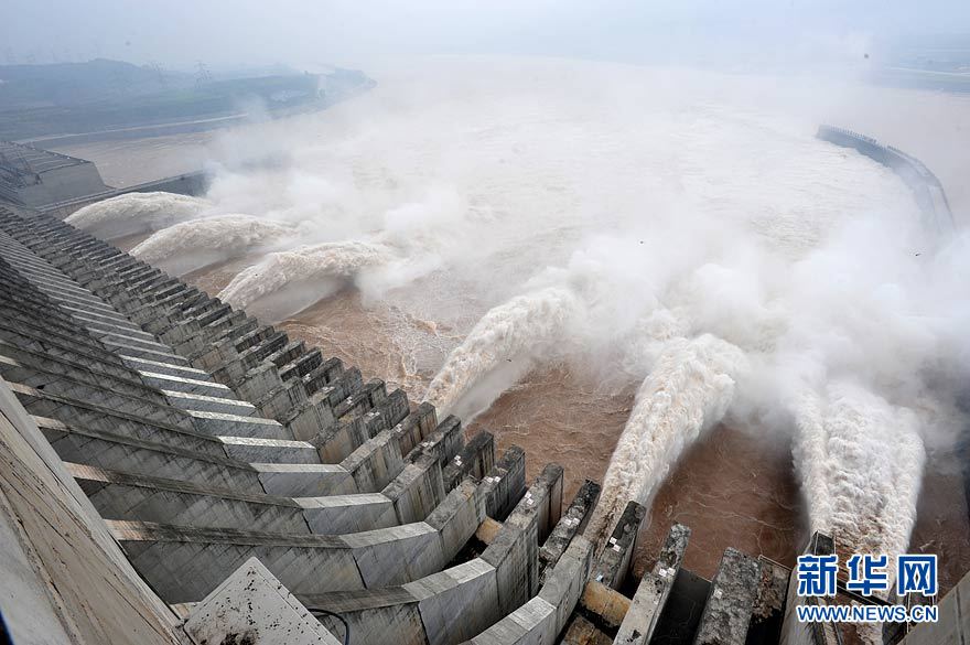 7月19日,三峽大壩開啟6個(gè)泄洪深孔和一個(gè)排漂孔泄洪。當(dāng)日上午8時(shí),三峽水庫入庫流量增至58000立方米/秒,再創(chuàng)今年入汛以來新高。長江三峽集團(tuán)公司目前正按長江防總最新調(diào)度令,從19日10時(shí)起,再度加大泄洪力度,將出庫流量調(diào)高到40000立方米/秒,積極迎戰(zhàn)建庫以來的最大洪峰。據(jù)長江水文局最新預(yù)報(bào),長江上游正在形成一場大洪水,洪峰流量將逼近70000立方米/秒。 新華社發(fā)(鄭家裕 攝)