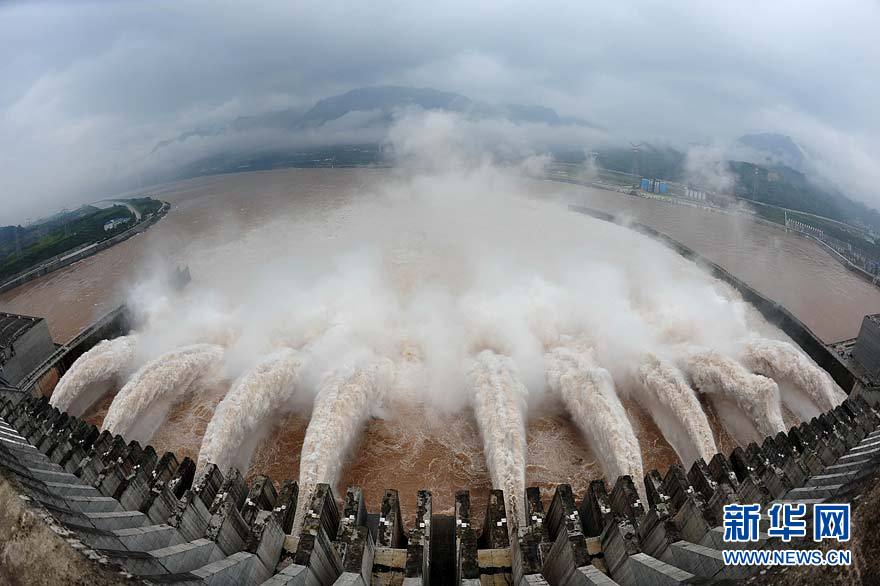7月20日上午,三峽大壩開(kāi)啟9個(gè)深孔泄洪,下泄流量控制在4萬(wàn)立方米/秒。 7月20日8時(shí),三峽迎來(lái)建成后的首次特大洪峰,流量達(dá)7萬(wàn)立方米/秒,刷新了1998年以來(lái)通過(guò)宜昌的最大峰值記錄。為保證通航安全,三峽雙線五級(jí)船閘已于19日11時(shí)停航,這是今年以來(lái)三峽船閘南北線首次同時(shí)停航。與此同時(shí),載貨汽車滾裝船翻壩轉(zhuǎn)運(yùn)工作正式啟動(dòng)。長(zhǎng)江三峽通航管理局表示,當(dāng)三峽入庫(kù)流量小于4.5萬(wàn)立方米/秒時(shí),三峽船閘將復(fù)航。 新華社記者 程敏攝