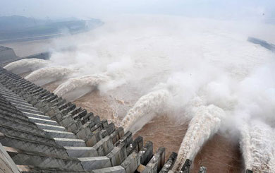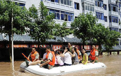 新灘鎮(zhèn)沙套湖大垸的村民尹章林林家門口水深及膝,只能靠小舟進出(7月20日攝)。