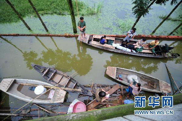 由于近日連續(xù)遭受暴雨襲擊,湖北省洪湖市新灘鎮(zhèn)內(nèi)澇嚴(yán)重,農(nóng)作物損失慘重。正常水位23米多的沙套湖目前已經(jīng)漲至25.91米,創(chuàng)歷史最高水位。位于湖區(qū)內(nèi)的洪湖市新灘鎮(zhèn)沙套湖大垸已經(jīng)被水圍困9天,由于降雨還在繼續(xù),水難以排出,村民們的食物和用水難以為繼。目前,受災(zāi)村民正在展開各種方式的自救行動,守護自己的家園,等待洪水退去。新華社記者 郝同前 攝