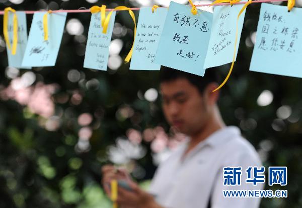 上海大學的學生用卡片寄語的方式表達對錢偉長校長的追思。