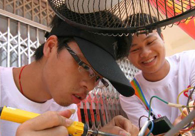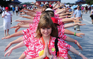 8月3日,美國中學(xué)生在南京市參加包餃子活動(dòng)。近日,參加“漢語橋”美國高中生夏令營的80名美國中學(xué)生來到南京市第一中學(xué),他們在這里開展為期10天的夏令營活動(dòng),他們將學(xué)習(xí)漢語以及中國書畫、剪紙、中國結(jié)、京劇臉譜和陶藝等傳統(tǒng)藝術(shù),并參觀當(dāng)?shù)爻鞘朽l(xiāng)村、歷史古跡和住宿學(xué)生家庭,參加民間民俗活動(dòng),體驗(yàn)中國文化。新華社記者孫參攝