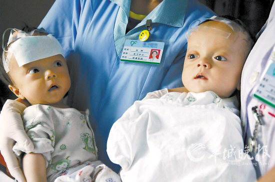 羊城晚報(bào)訊 記者張小磊,實(shí)習(xí)生李翌、周治濤,通訊員吳劍鵬報(bào)道:一歲大的陳曉柱在南方醫(yī)院急診室的病房中,嘶啞地哭喊著,他左手上扎著吊針,右手緊緊地抓著嬰兒床的護(hù)欄。躺在旁邊的是他的雙胞胎弟弟陳曉棟,腦門上也扎著針,安靜地睜大眼睛,看著周圍的陌生人,眼里充滿了好奇。這對(duì)雙胞胎患有腦積水,而他們的父母不知身在何處。
