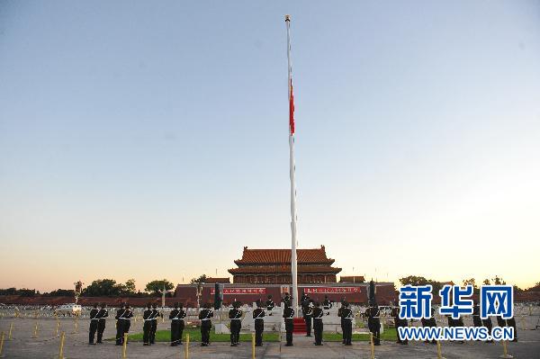 新華網(wǎng)快訊:15日5時(shí)25分,天安門(mén)廣場(chǎng)舉行例行的升旗儀式后,五星紅旗緩緩降下一半,以哀悼甘肅舟曲特大山洪泥石流災(zāi)害中遇難的同胞。