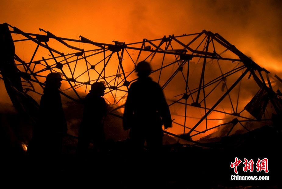 2010年8月16日9時(shí)40分左右,黑龍江省伊春市烏馬河區(qū)華利實(shí)業(yè)有限公司鞭炮廠發(fā)生持續(xù)爆炸。爆炸發(fā)生后,伊春市委、市政府緊急啟動(dòng)爆炸事件、醫(yī)療救護(hù)應(yīng)急處置預(yù)案,緊急調(diào)派公安、消防、醫(yī)療救護(hù)、武警部隊(duì)、駐軍部隊(duì)2000余人及時(shí)進(jìn)行搶救,經(jīng)過(guò)8個(gè)多小時(shí)的奮力鏖戰(zhàn),因爆炸引起的火災(zāi)已全部撲滅。截至17日零時(shí),發(fā)生在當(dāng)?shù)貫躐R河區(qū)的鞭炮廠爆炸已造成19人死亡,5人失蹤,住院傷者153人。準(zhǔn)確原因正在進(jìn)一步調(diào)查之中。圖為16日夜23時(shí)30分,武警消防部隊(duì)官兵不辭辛苦仍戰(zhàn)斗在火場(chǎng)一線清理殘火。陳剛 攝