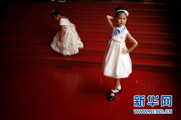 8月19日,參賽小選手李秋含(前)在做登臺(tái)前的準(zhǔn)備。 8月18日至19日,2010至2011年度國(guó)際小公主(王子)中國(guó)區(qū)總決賽在北京舉行,來(lái)自全國(guó)各地的近150名孩子在這里爭(zhēng)奪各類獎(jiǎng)項(xiàng)。參賽選手年齡在2歲至18歲之間。獲獎(jiǎng)選手將有機(jī)會(huì)贏得世界上專為年輕女孩設(shè)計(jì)的“灰姑娘”獎(jiǎng)學(xué)金。濃妝、高跟鞋、貓步、競(jìng)爭(zhēng),這些昔日只出現(xiàn)在成人世界中的詞匯,如今也成了這些參賽小選手生活中的關(guān)鍵詞。家長(zhǎng)、幼兒教育機(jī)構(gòu)、模特經(jīng)紀(jì)機(jī)構(gòu)則聯(lián)手將這些孩子推向了一條新的“成名之路”。新華社記者 沈伯韓攝