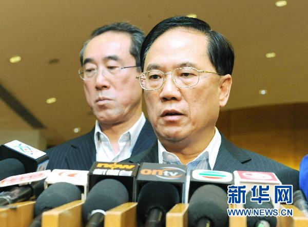 8月23日,香港特區(qū)行政長(zhǎng)官曾蔭權(quán)(右)就菲律賓劫持事件會(huì)見(jiàn)記者。香港特區(qū)行政長(zhǎng)官曾蔭權(quán)23日晚表示,對(duì)有香港游客在菲律賓劫持事件中遇害感到十分悲傷,對(duì)兇手冷血的行為感到憤怒!拔乙蛩纻呒覍僦乱宰钌钋械奈繂(wèn),特區(qū)政府會(huì)向傷者和家屬提供一些可能的協(xié)助,幫他們度過(guò)這個(gè)困難時(shí)刻。” 新華社發(fā)(李秋嬋攝)