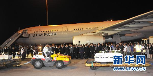 這是8月25日在香港機(jī)場(chǎng)拍攝的菲律賓人質(zhì)事件遇難者迎接儀式。當(dāng)日,搭載菲律賓人質(zhì)事件8名遇難香港同胞遺體和部分傷員、旅行團(tuán)成員及家屬的包機(jī)返抵香港,特區(qū)政府政務(wù)司司長(zhǎng)唐英年、中央政府駐港聯(lián)絡(luò)辦副主任李剛、外交部駐港特派員公署特派員呂新華等到機(jī)場(chǎng)迎接。新華社記者黃曉勇攝