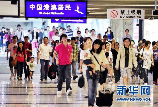 人們通過羅湖橋進入深圳(8月22日攝)。