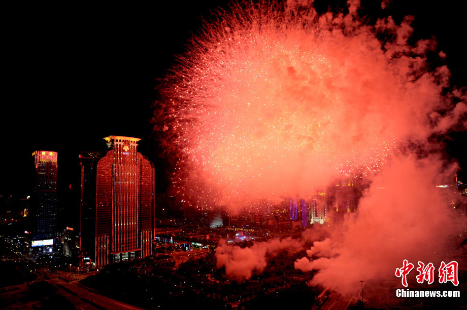 9月6日晚8點(diǎn)30分,深圳夜空璀璨絢麗,慶祝深圳經(jīng)濟(jì)特區(qū)建立30周年焰火晚會(huì)在深南大道水晶島舉行。今晚燃放煙花數(shù)量145107發(fā),主要品種19種,全長(zhǎng)30分鐘,共四個(gè)樂章。深圳市民分別在蓮花山公園、市民中心、深南路、彩田路、會(huì)展中心等區(qū)域觀看深圳經(jīng)濟(jì)特區(qū)30周年慶典煙花晚會(huì)。中新社記者 陳文 攝