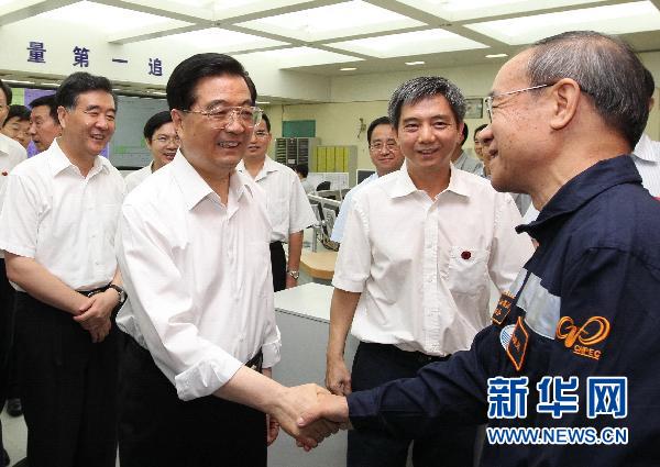 9月4日至6日,中共中央總書記、國(guó)家主席、中央軍委主席胡錦濤在廣東深圳考察工作。這是胡錦濤考察中國(guó)廣東核電集團(tuán)有限公司大亞灣核電基地時(shí),同核電專家和企業(yè)員工親切交談,了解核電站建設(shè)和運(yùn)營(yíng)情況。新華社記者鞠鵬攝
