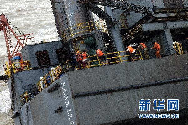 9月8日,救援人員在傾斜的山東東營勝利油田作業(yè)3號(hào)鉆井平臺(tái)上營救遇險(xiǎn)人員。