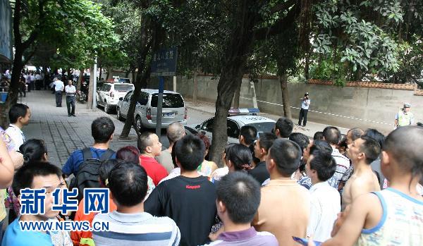 9月16日,群眾在事發(fā)現(xiàn)場(chǎng)附近圍觀(guān)。當(dāng)日15時(shí)40分左右,重慶一男子將一女子劫持到重慶江北區(qū)宏進(jìn)藥店新力藥房附近。經(jīng)過(guò)警方近3個(gè)小時(shí)的耐心談判和思想工作,18時(shí)10分,人質(zhì)被安全解救。新華社發(fā)