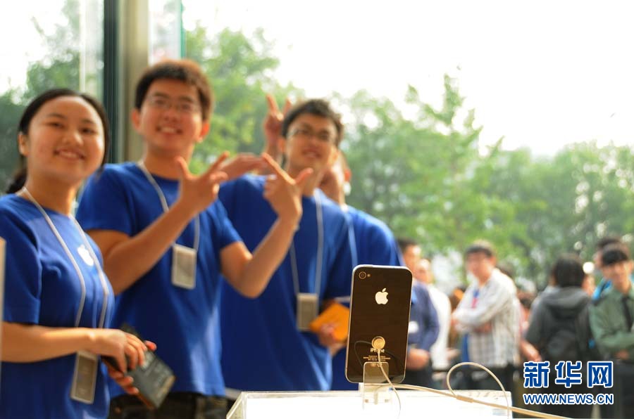 2010年9月25日,iphone4手機(jī)在中國(guó)北京西單大悅城店上市首發(fā)。中國(guó)的“蘋(píng)果”粉絲們?cè)诘却嗳蘸蠼K于購(gòu)買(mǎi)到了他們心愛(ài)的手機(jī)。