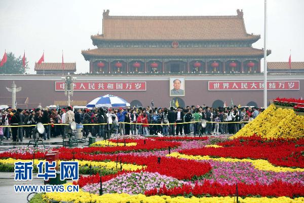 10月2日,游客在北京天安門(mén)廣場(chǎng)游覽。當(dāng)日,北京天氣晴好,天安門(mén)、故宮地區(qū)迎來(lái)如潮的游人。 新華社發(fā)(陳柏材 攝)