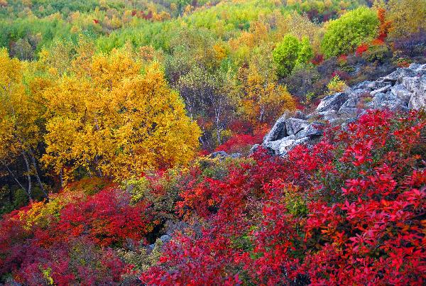 新華社照片,北京,2010年10月8日 京郊秋色美如畫(huà) 京郊喇叭溝門國(guó)家森林公園宜人的秋色(10月6日拍攝)! 〗鹎,北京市懷柔區(qū)喇叭溝門國(guó)家森林公園層林盡染,絢爛多姿,猶如一幅美麗畫(huà)卷,陶醉了眾多游人。 新華社發(fā)(卜向東 攝)