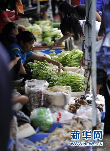 10月8日,海南省瓊海市市民正在農(nóng)貿(mào)市場購買蔬菜。當(dāng)日,據(jù)新華社全國農(nóng)副產(chǎn)品和農(nóng)資價(jià)格行情系統(tǒng)監(jiān)測,海南多個(gè)市縣的多個(gè)品種菜價(jià)再次上漲,其中菠菜、油菜、菜花等葉類蔬菜漲幅均超過了30%,創(chuàng)出年內(nèi)新高。新華社記者 郭程 攝