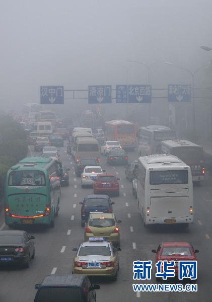 10月15日,大霧籠罩南京,車輛在大霧中緩慢行駛。當(dāng)日,我國部分地區(qū)出現(xiàn)大霧天氣。 新華社發(fā)(王新 攝)