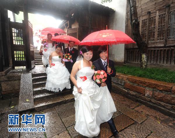 10月24日,新人們行走在古鎮(zhèn)中。當(dāng)日,浙江省桐鄉(xiāng)市烏鎮(zhèn)迎來(lái)了一場(chǎng)水鄉(xiāng)集體婚禮,50對(duì)新人都是從外地來(lái)桐鄉(xiāng)創(chuàng)業(yè)、生活的“新居民”;槎Y包括彩船娶親、彩船巡游、行走古鎮(zhèn)等特色內(nèi)容,典禮與古鎮(zhèn)水鄉(xiāng)風(fēng)貌完美融合,為新人們留下一份美好回憶。本次“桐鄉(xiāng)新居民集體婚禮”旨在將現(xiàn)代婚慶與傳統(tǒng)民俗相結(jié)合,倡導(dǎo)健康、文明的婚禮禮儀。新華社記者 徐昱 攝