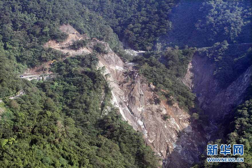10月25日航拍的位于臺灣宜蘭縣境內(nèi)的蘇花公路塌方搜救現(xiàn)場。當日,200多名臺灣陸海空搜救人員持續(xù)在蘇花公路和附近海域、空域進行全方位搜尋,陸上、海上、海面下和空中搜尋同步展開。新華社發(fā)