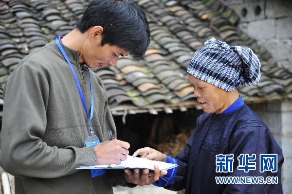 11月1日,在與越南毗鄰的廣西靖西縣龍邦鎮(zhèn)其龍村,普查員在壯族群眾家中進行查訪登記。