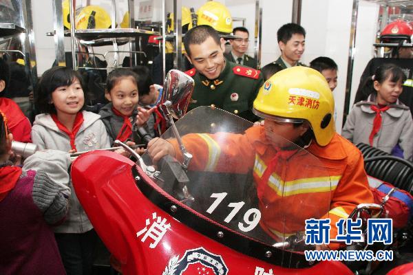 11月5日,天津市興安路小學(xué)學(xué)生坐在消防摩托車(chē)上。當(dāng)日,興安路小學(xué)開(kāi)展消防安全教育活動(dòng),迎接“119消防宣傳日”。老師帶領(lǐng)學(xué)生來(lái)到和平消防支隊(duì)學(xué)習(xí)相關(guān)知識(shí),以提高學(xué)生們的消防安全意識(shí)。新華社發(fā)(孫繼武 攝)