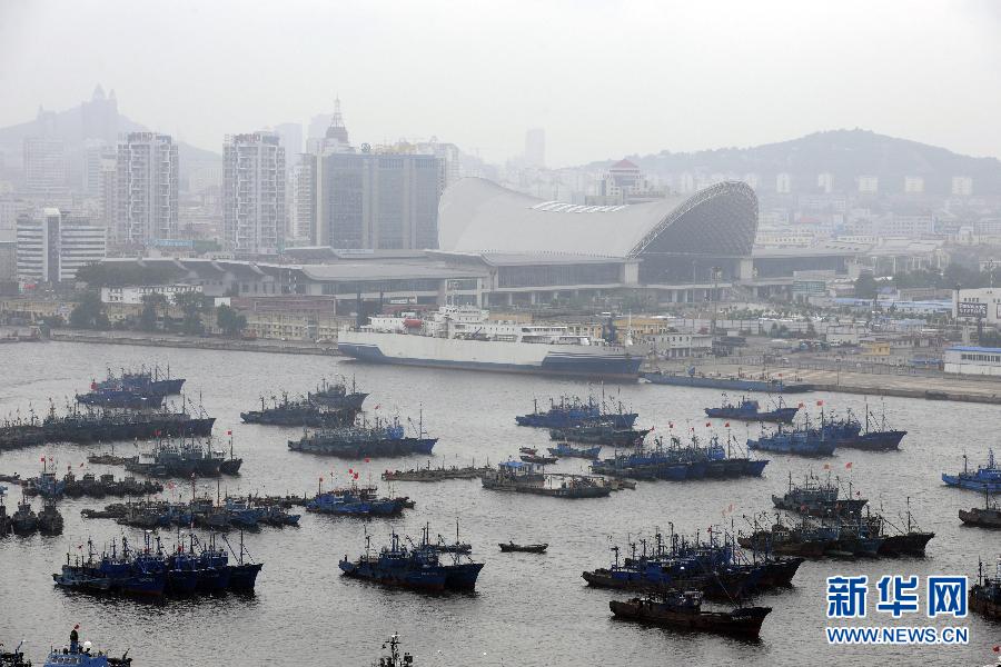 8月7日,在山東煙臺,眾多漁船紛紛回港躲避臺風“梅花”! ∨_風“梅花”逐漸逼近山東半島,山東省防汛抗旱指揮部7日20時30分啟動防汛防臺風一級預警。山東省氣象臺也于19時將臺風黃色預警信號升級為臺風橙色預警信號。受“梅花”影響,7日夜間至8日夜間,山東威海、煙臺兩市將有暴雨、大暴雨,局部地區(qū)將有特大暴雨! ⌒氯A社發(fā)(初陽 攝)