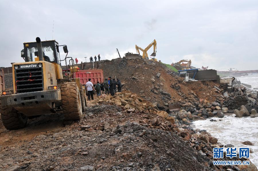 大連福佳大化防波堤壩共有兩段垮塌 海水暫時(shí)被控制住8月8日,一輛大型運(yùn)輸車在現(xiàn)場(chǎng)救援。當(dāng)日10時(shí)30分,受強(qiáng)熱帶風(fēng)暴“梅花”影響,大連金州開發(fā)區(qū)一化工企業(yè)沿海處在建防潮堤壩發(fā)生潰壩,海水倒灌。記者在現(xiàn)場(chǎng)了解到,大連福佳大化(PX項(xiàng)目)垮塌防潮堤壩共有兩段,每段大約三四十米。目前大連市正調(diào)集大量運(yùn)輸車,運(yùn)送土石方及防波堤專用混凝土構(gòu)件進(jìn)行應(yīng)急填埋。截至當(dāng)日15時(shí)許,海水已暫時(shí)被控制住。新華社記者 閆平 攝
