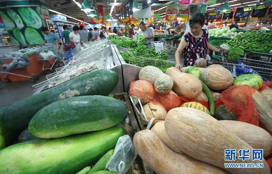 市民在江蘇省南通市一家超市內(nèi)選購(gòu)蔬菜(8月7日攝)。
